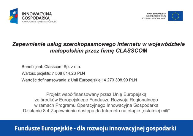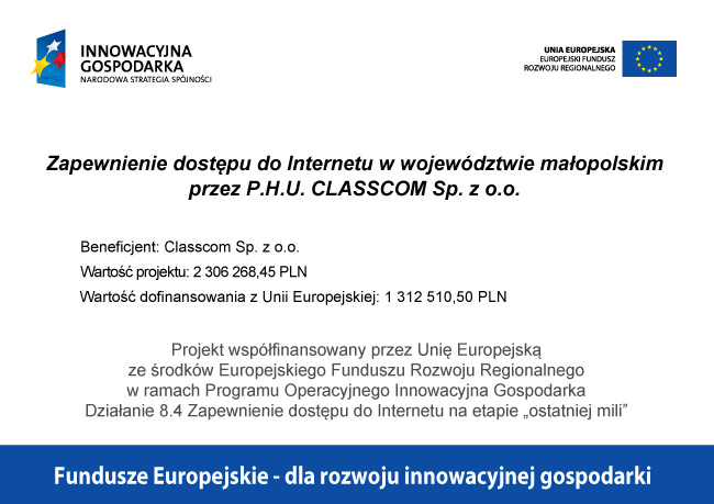 Tytuł projektu: Zapewnienie dostępu do Internetu w województwie małopolskim przez P.H.U. CLASSCOM Sp. z o.o.